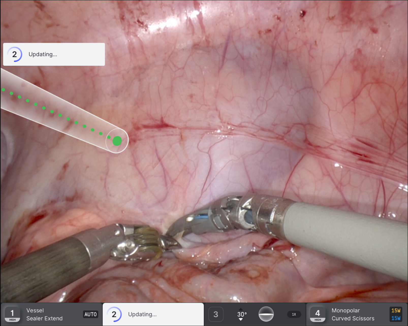 In this Da Vinci 5 prototype, we tested and refined interaction paradigms and visualization techniques to clearly represent oxygen absorption rates within cancerous tissue, supporting faster interpretation and decision-making.
